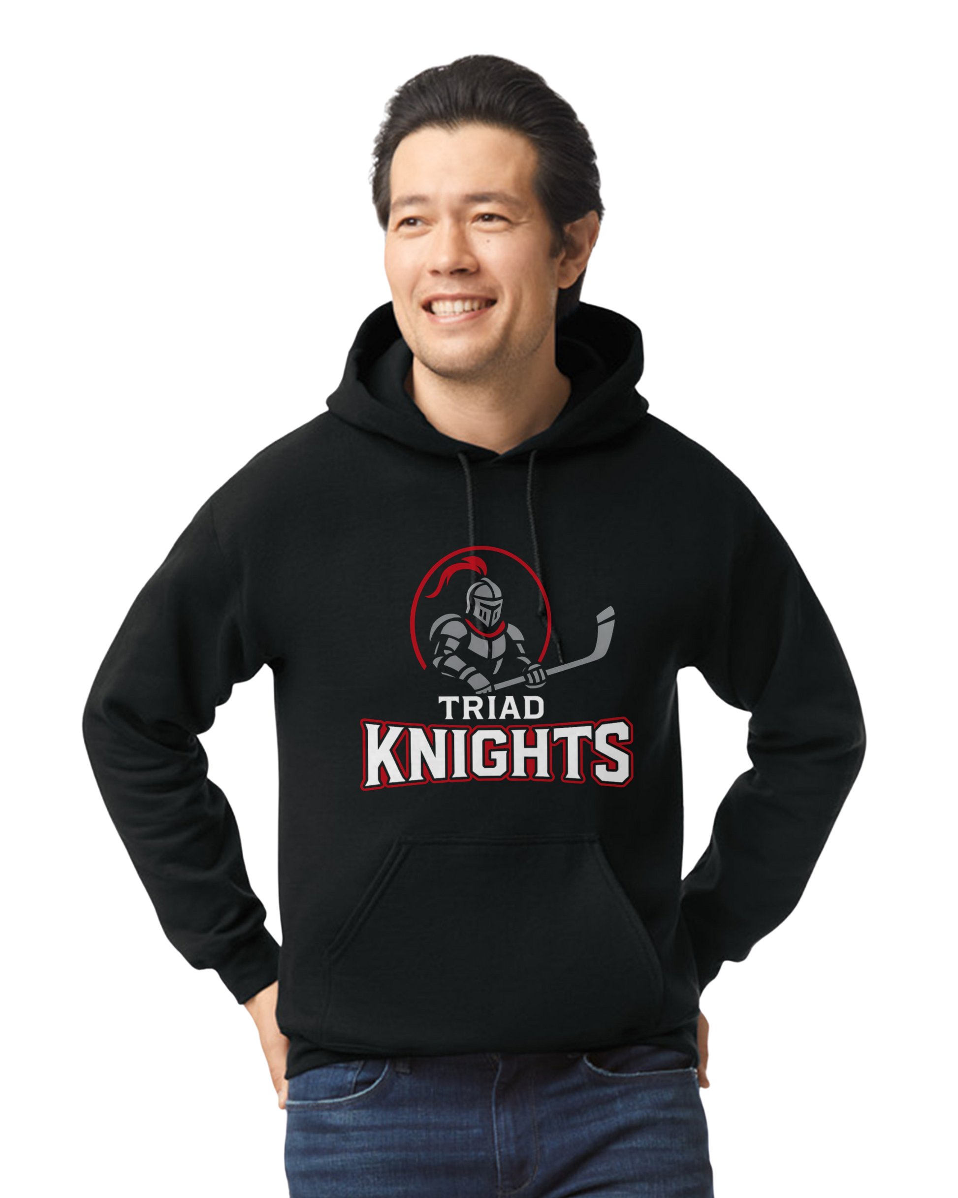 Stylish Gildan apparel featuring a hockey triad design perfect for hockey fans. Quality construction and a relaxed fit.